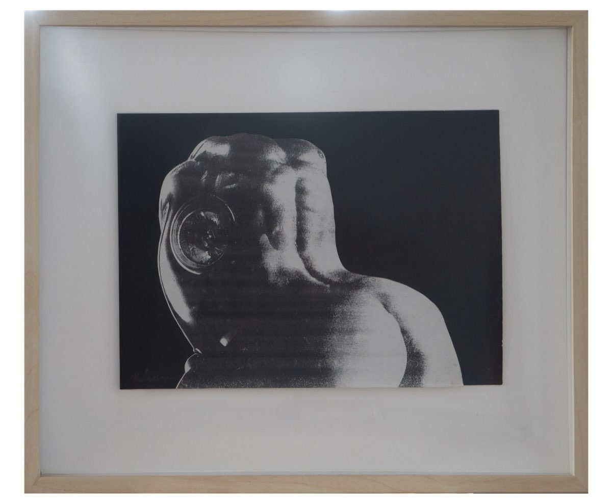 신학철(申鶴澈, 1943‒)은 민중미술 경향의 작가로 초기에는 실험미술에 참여하여 1970년대 초 한국아방가르드협회(AG)전을 통해 작품을 발표하기도 하였다. 그러나 1980년대부터 신군부 독재 체제를 비판하며 사회적 소통과 발언을 위한 미술의 역할에 대해 고민하였고 한국 근현대사의 주요 사건을 극사실주의 기법과 포토몽타주 기법을 이용하여 제작하였다. ‹묵시 802›는 신학철이 1970년대 후반부터 1980년대 초반에 집중했던 콜라주 기법으로 제작된 작품으로, 구두 모양의 얼굴을 한 샐러리맨들이 일제히 한 방향을 보고 있는 것을 통해 일방적인 정보의 흐름과 억압된 표현의 자유를 초현실적으로 풍자한다. 신학철의 작품에 등장하는 대상들은 주로 노동자, 중산층, 농민 등으로 다양한 계층의 인물들은 미화되지 않고 사실적으로 표현되어 구체적인 실체로서의 역사를 드러내고 있다.