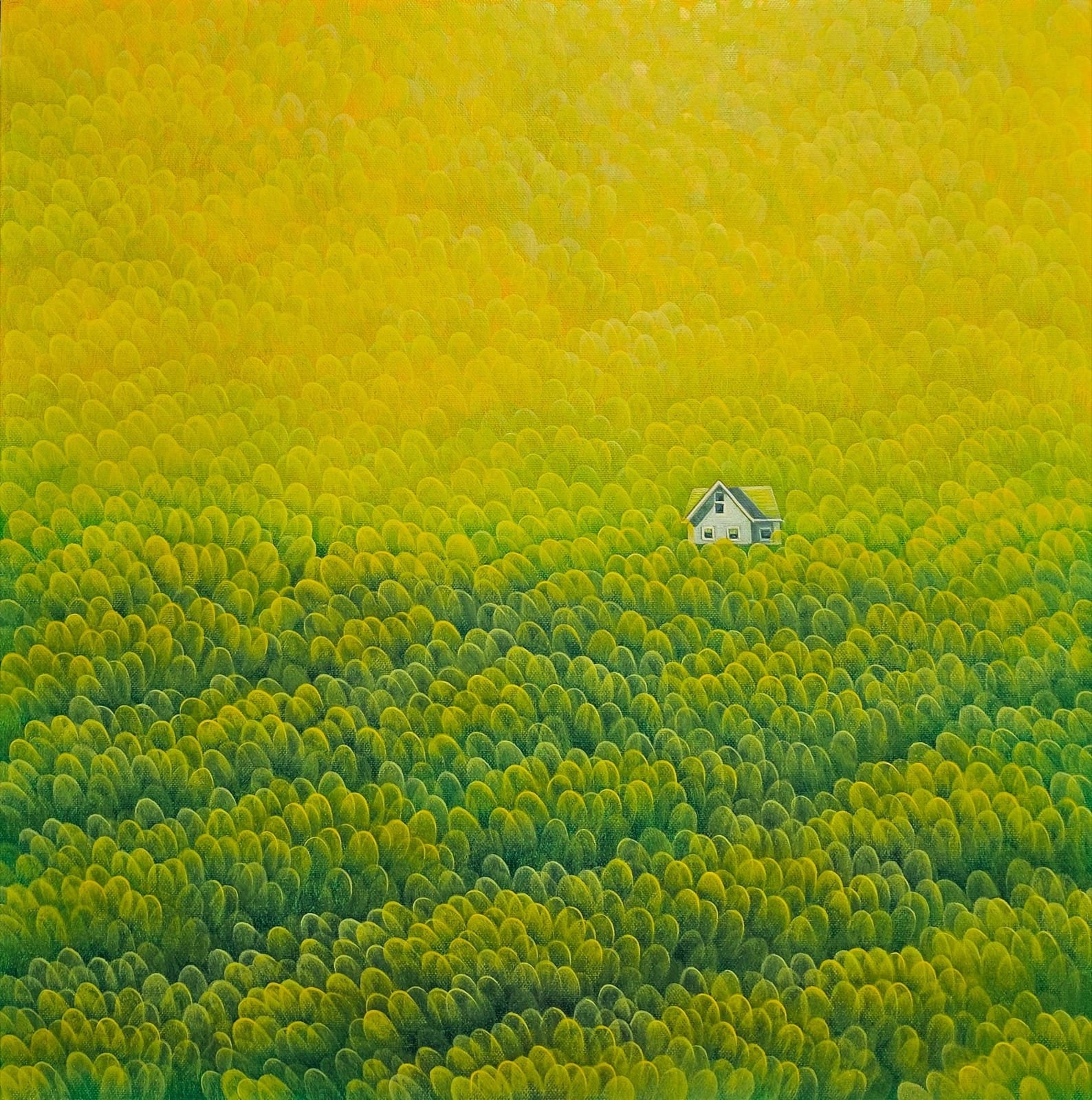 In Search of a Place , 나의 자리 나의 요새를 찾아서 나의 작업은 반복적인 선 긋기와 몰입의 행위에서 출발한다. 선을 긋고 다시 겹쳐 쌓아가는 과정은 단순한 조형적 기법이 아니라, 내면의 불안과 갈등을 단번에 해소하는 것이 아니라, 억제하며 조금씩 다듬어 나가는 과정이다. 반복 속에서 불안정한 감정을 길들이며, 그 안에서 새로운 질서와 구조를 만들어낸다. 나를 지탱하기 위한 의식적 행위이다. 이러한 행위 속에서 필연과 우연이 교차하며 만들어진 패턴은 곧 나만의 요새가 된다. 요새는 보호와 은신의 공간이자, 여전히 미완의 상태로 빛을 향해 나아가는 삶의 은유이다. 나는 곤충이나 새 같은 생명체들이 주변의 재료를 모아 둥지를 짓는 과정을 오래 관찰해왔다. 그들의 둥지는 은폐와 위장의 기능을 가지면서도 생존을 위한 터전이며, 동시에 비워지고 다시 채워지는 순환의 장소다. 나 또한 반복적 패턴과 빛의 잔상을 재료로 삼아 요새를 구축하고, 그 속에서 불안정한 현실과 내면을 성찰한다. 이러한 과정은 불완전한 존재로서 살아가는 나 자신을 드러내며, 불안 속에서도 희망을 향해 나아가는 힘을 담고 있다. 최근의 작업에서는 반복적 패턴 위에 작은 오브제 이미지를 배치한다. 이 오브제들은 단순한 부착물이 아니라, 관찰자 시점에서 나의 내면을 다시 돌아보고 극복하기 위한 장치로 작동한다. 비행기, 집, 잠수정, 행글라이더와 같은 오브제들은 이동과 머묾, 탐험과 은신의 상징으로서, 반복의 세계 속에서 작가의 자화상을 드러낸다. 이는 기존의 요새 개념을 확장하며, 보다 구체적이고 자화상적인 서사를 화면에 부여한다. 나의 요새는 아직 완성되지 않은 미확정의 요새이다. 그것은 단단히 닫힌 곳이 아니라, 관객들이 각자의 경험과 감각을 채워 넣을 수 있는 열려있는 복합적인 공간이다. 반복과 몰입의 과정 속에서 조금씩 단단해지는 이 요새는 결국 나 자신의 자화상이자, 불안정한 삶을 살아가는 우리 모두의 모습과 닮아 있다. -작가노트중- 반복적으로 선을 그리는 행위는 세상을 불완전하게 볼 수 없는 나를 보여준다. 이렇게 몰두하는 동안에 나는 알 수 없는 무아에 빠진다. 선은 그어지고 채워지면서 규정할 수 없는 새로운 세계가 캔버스에 나타난다. 이 세계는 남들과 다르게 세상을 볼 수 밖에 없는 나를 드러낸다. 지극히 단순하면서도 반복적인 움직임을 통해 화면에 나타나는 형상들은 나를 찾아가는 구도의 길처럼 보인다. 선 긋기, 혹은 선 그리기를 통해 반복되는 노동의 조형적 변주를 탐구한다. 필연과 우연의 경계 사이를 구획 짓는 선택의 순간들이 무수히 집적되면서 만들어낸 ‘선의 패턴’은 선인장, 바닷속 산호, 구름, 물결, 숲, 산맥 등 불가사의한 자연의 이미지들 혹은 미확정의 심적 이미지인 이미저리(imagery)로 변주한다.