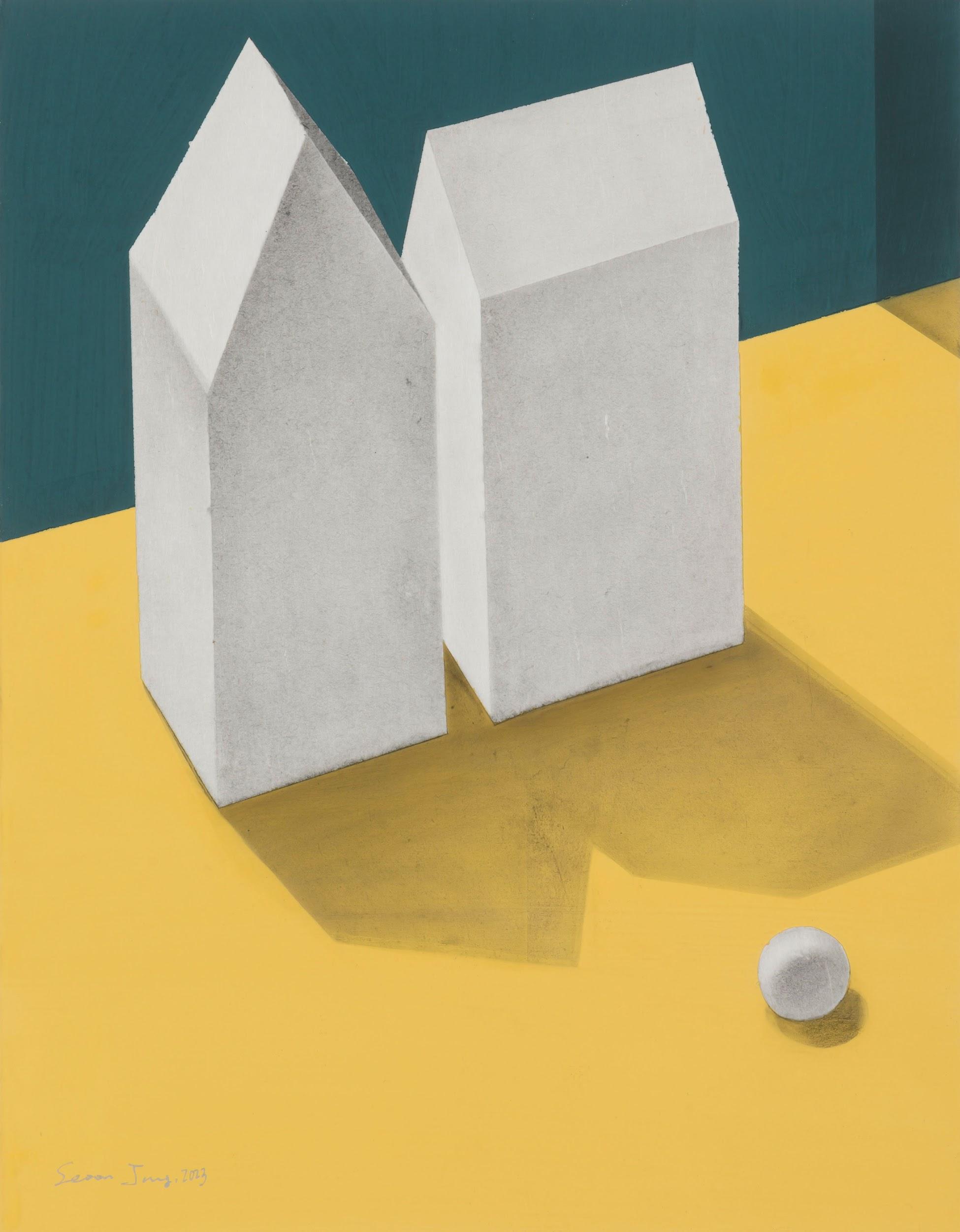 정서온은 집의 형상을 통해 관계의 거리와 감정의 밀도를 표현합니다. 화면 속 집들은 서로를 마주하거나, 가까이 있으면서도 각기 다른 곳을 응시합니다. 단순한 도형 속에 놓인 이 집들은 머물거나, 떠나려는 듯 고요한 자세로 자리를 잡습니다. 그 안의 공간은 현실이 아닌 내면의 풍경이며, 감정의 흐름을 따라 구성된 지도처럼 작동합니다. 이 집들은 우리 모두가 한 번쯤 지나온 마음의 장소이자, 관계의 서사를 담고 있는 조용한 은유입니다.